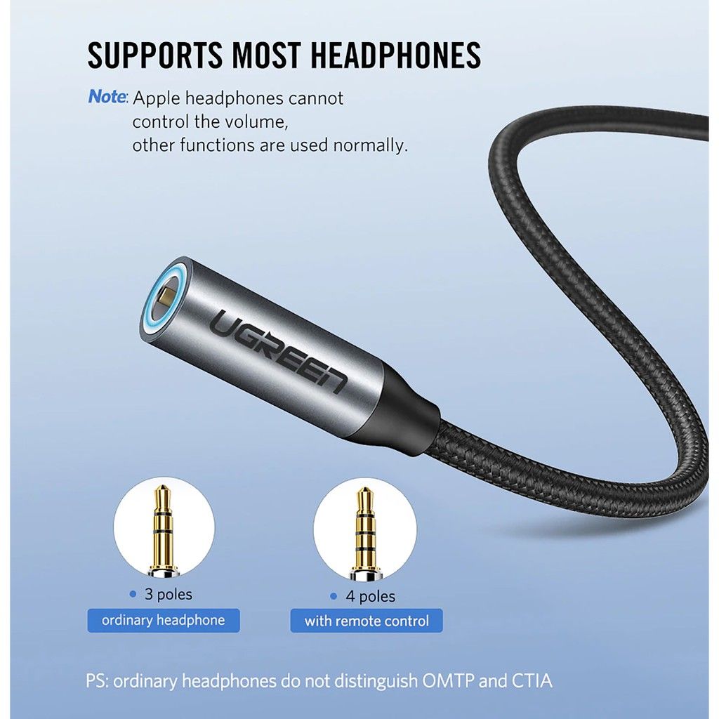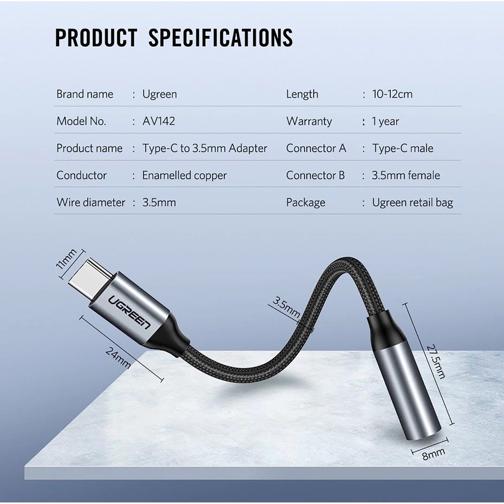 Cáp chuyển USB Type-C ra Audio 3.5mm Cao Cấp UGREEN