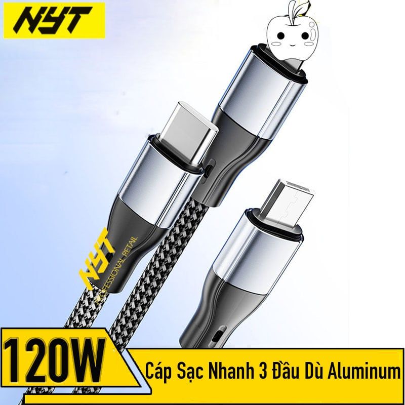 Cáp Sạc Nhanh 3 Đầu Micro / Type C / IOS Cao Cấp 120W NYT CS103 - BH 12T Đổi Mới