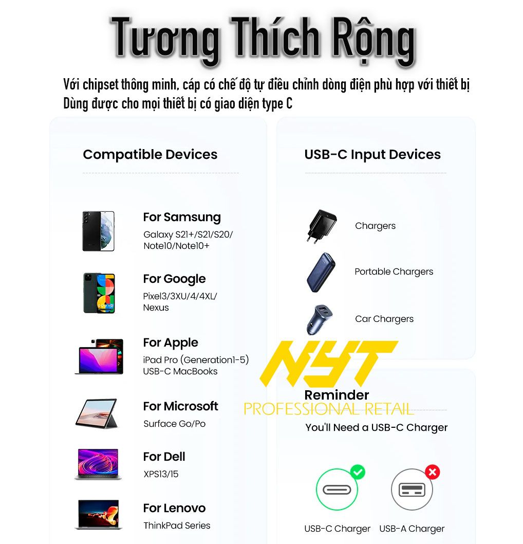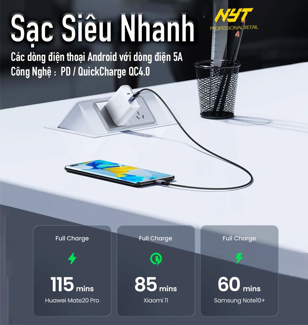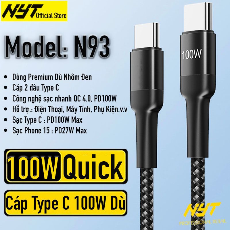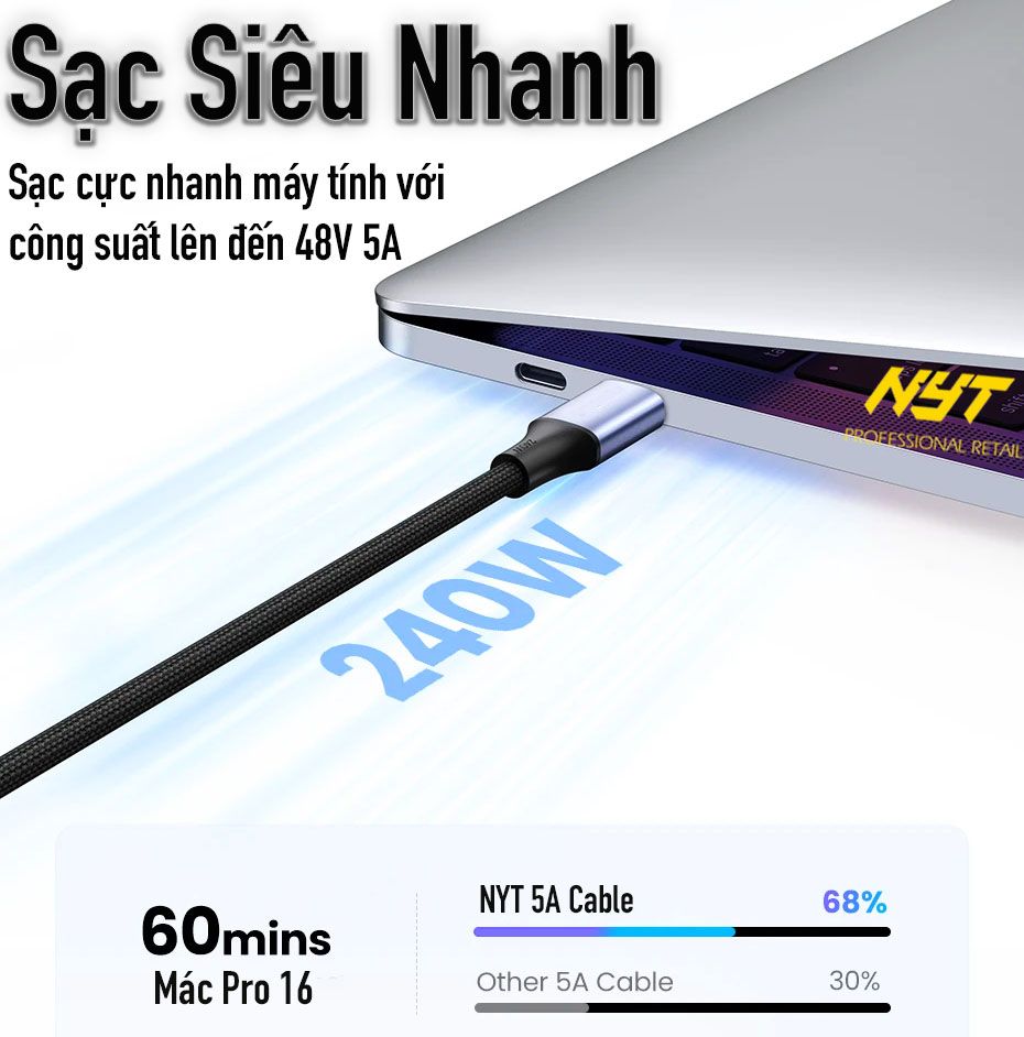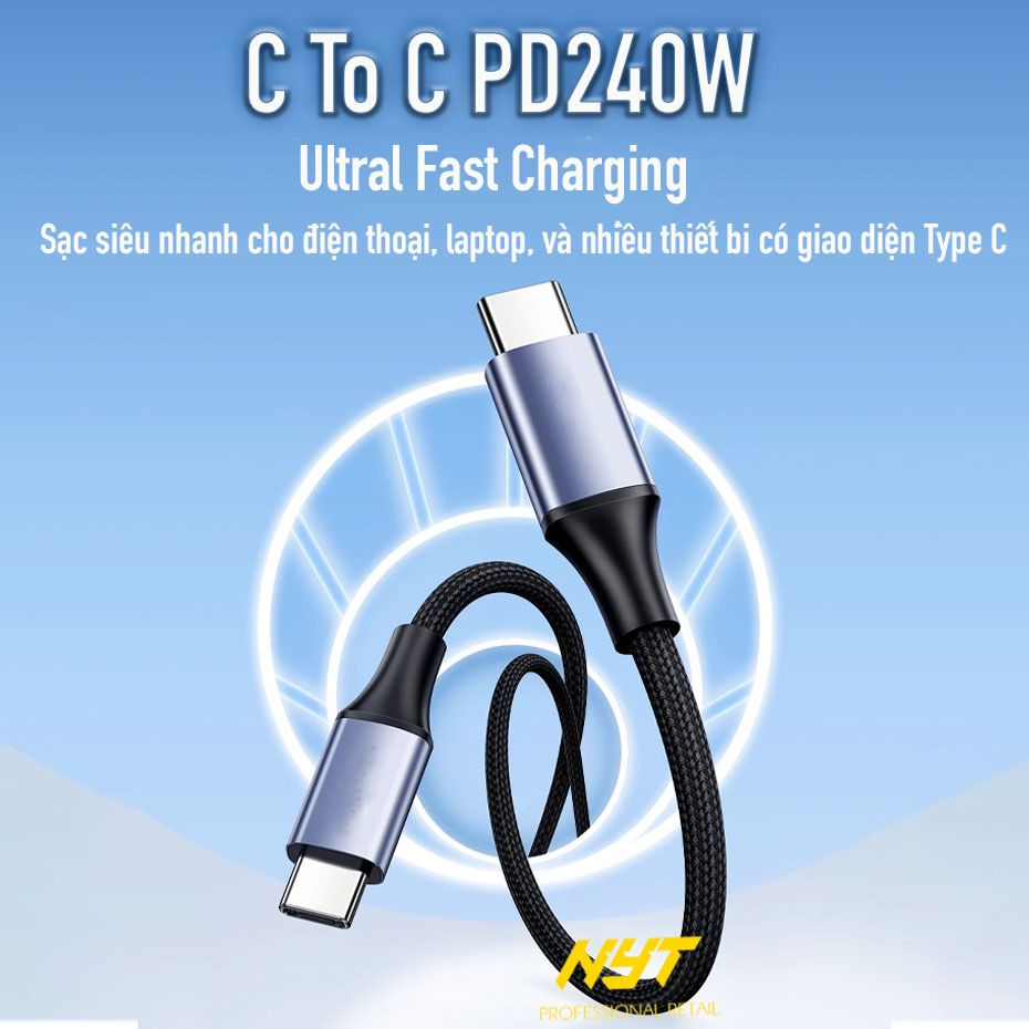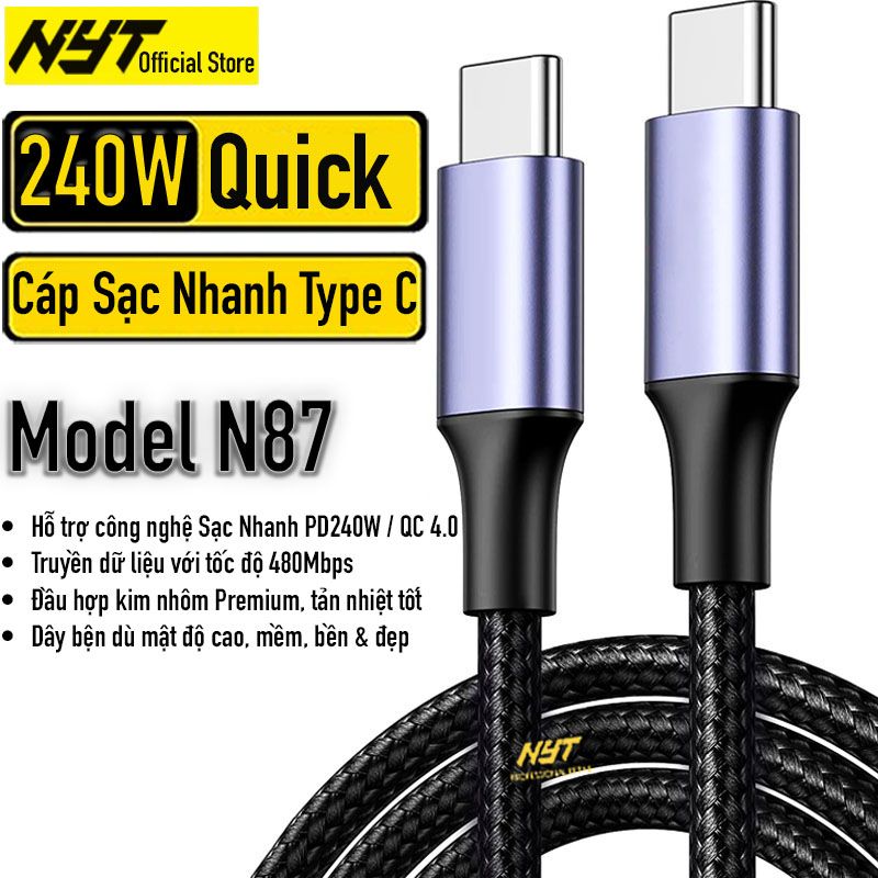 Cáp Sạc Type C 240W Siêu Nhanh Cho Điện Thoại, Máy Tính NYT N87 - BH 6T Chính Hãng
