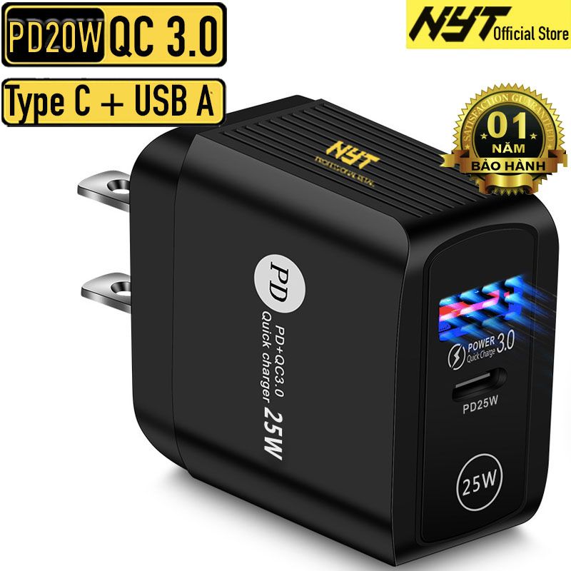 Củ Sạc Nhanh 25W Cổng Type C & USB A Quick Charge 3.0 NYT Live CS102