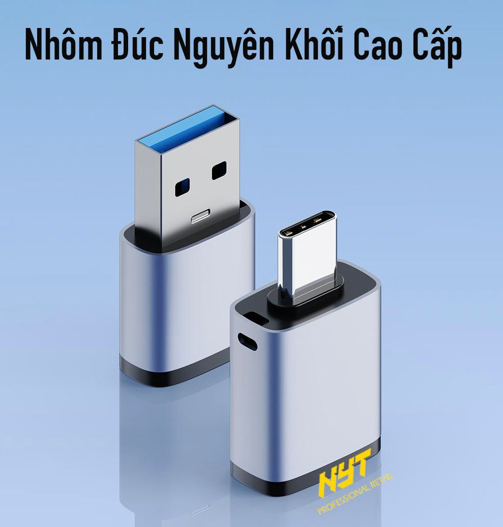 Đầu chuyển đổi USB sang Type C 3.0 Vỏ Nhôm Nguyên Khối Cao Cấp, Truyền Dữ Liệu Tốc Độ Cao Ổn Định