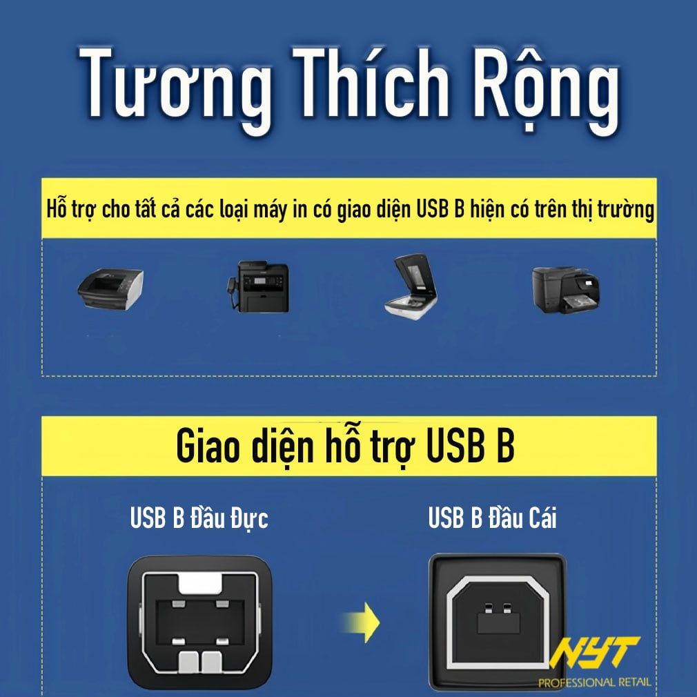 Dây Cáp Máy In USB B 2.0 Dài 1M - 10M NYT DL103 - Bảo Hành 12T Đổi Mới
