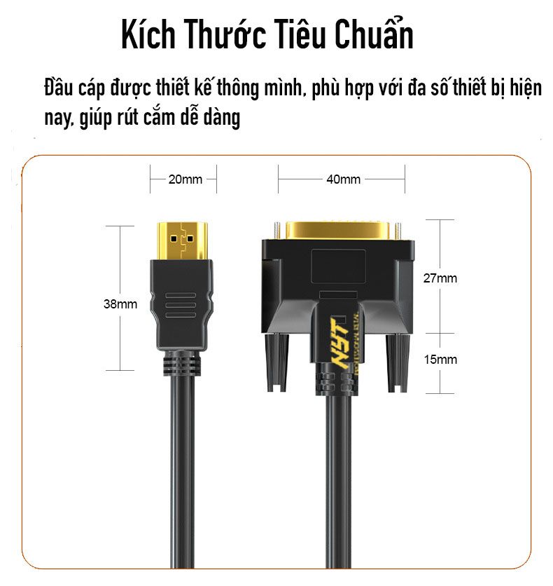 Dây HDMI To DVI Chính Hãng NYT H2D101 Dài 1M, 1.5M, 2M, 3M, 5M, 10M - BH 12T đổi mới
