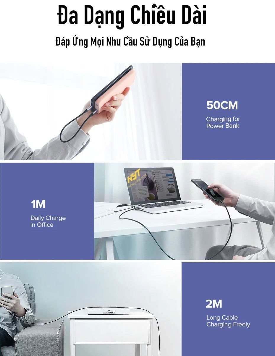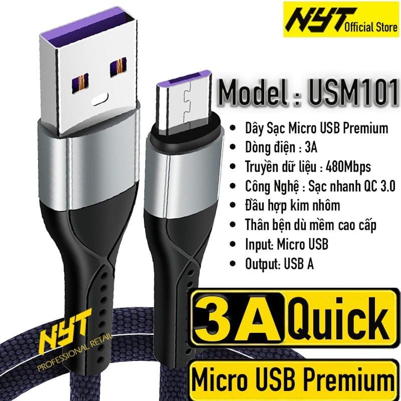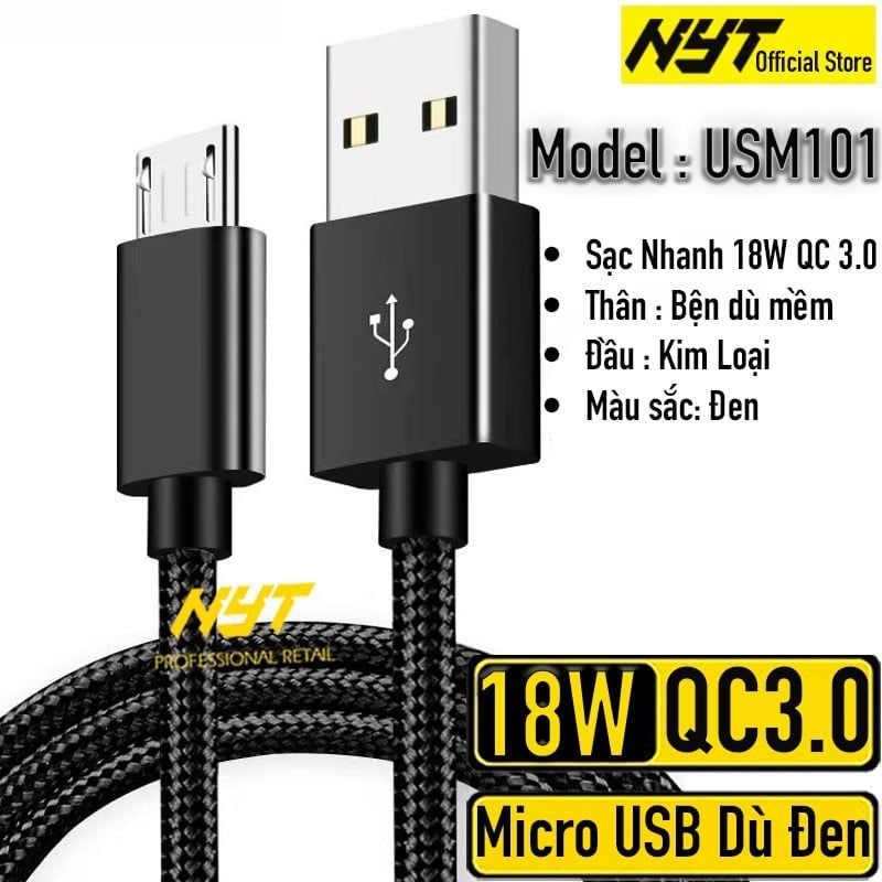 Dây Sạc Android Micro USB 0.25M - 2M, Công Nghệ Sạc Nhanh QC 3.0 3A 5V USM101 - BH 12T Chính Hãng