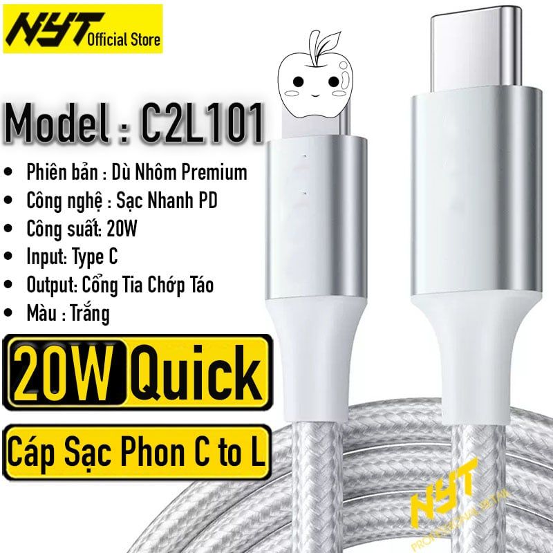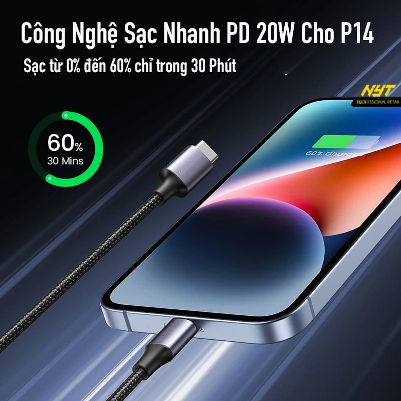 Dây Sạc Nhanh 20W PD Đầu Hợp Kim Bọc Dù Sang Trọng - Dùng Cho Phone 6-14 Bảo Hành 12T Đổi Mới
