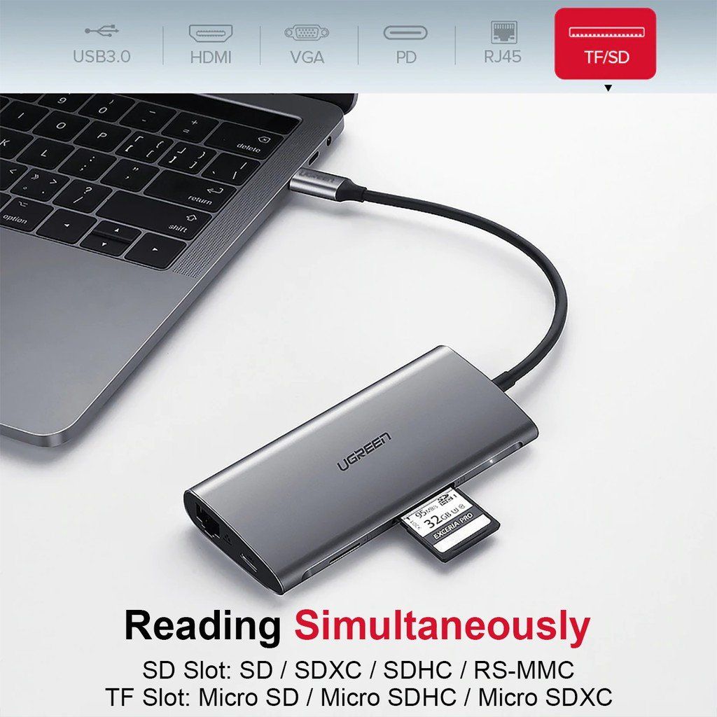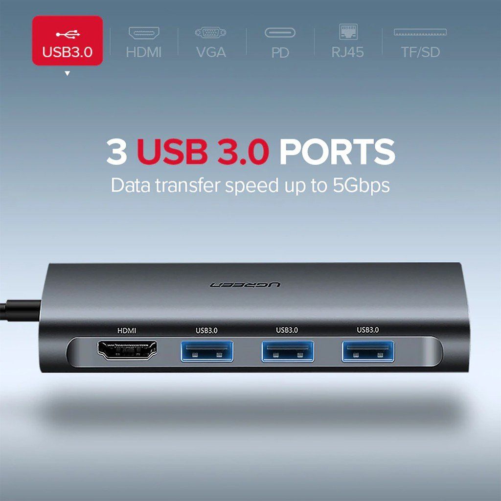 Hub USB Type-c ra HDMI, USB 3.0, Ethernet, TF/SD Card Cao Cấp UGREEN CM121