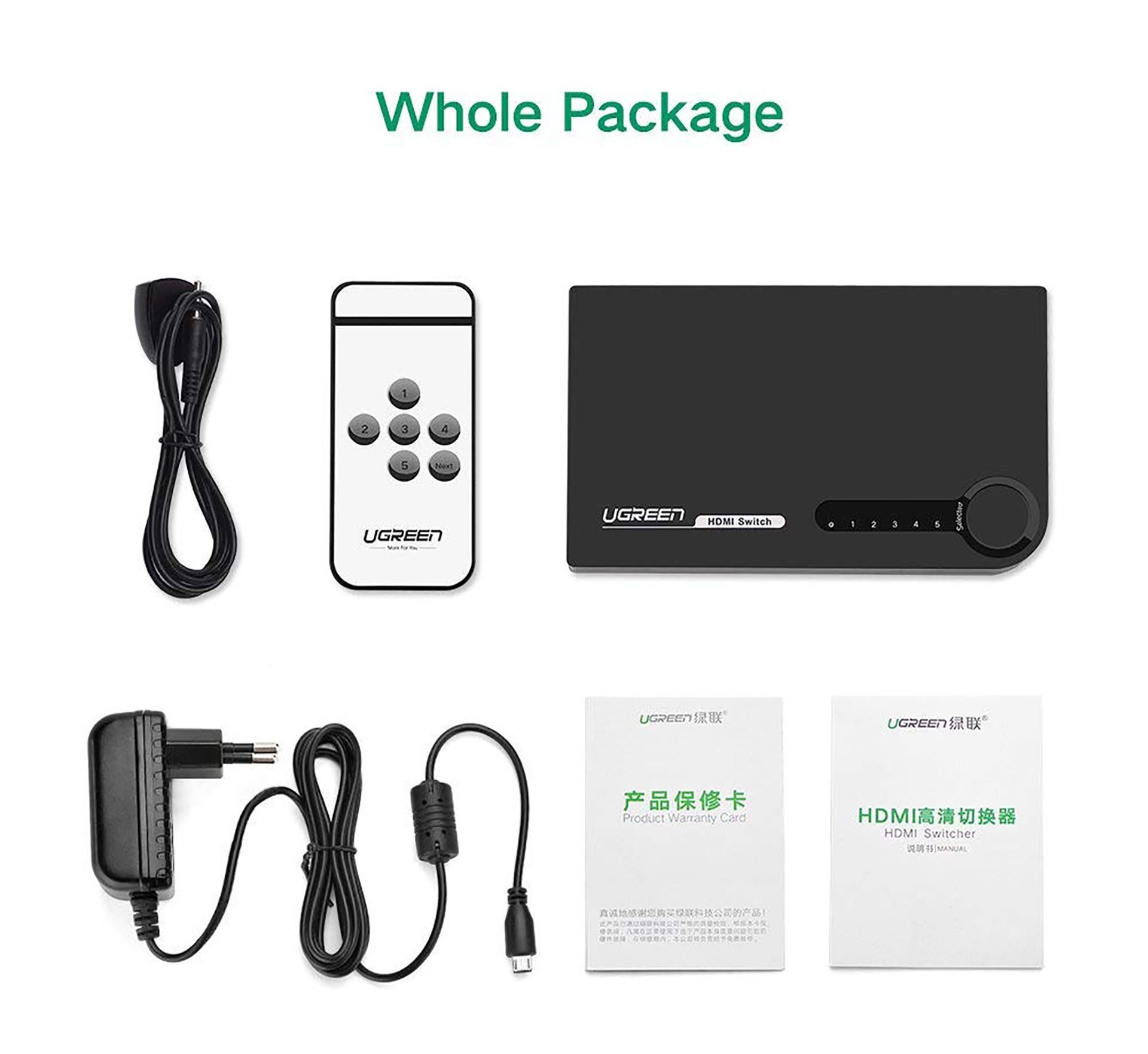 UGREEN 40205 - Bộ Gộp HDMI 5 Cổng Vào 1 Cổng Ra Cao Cấp , Có Remote